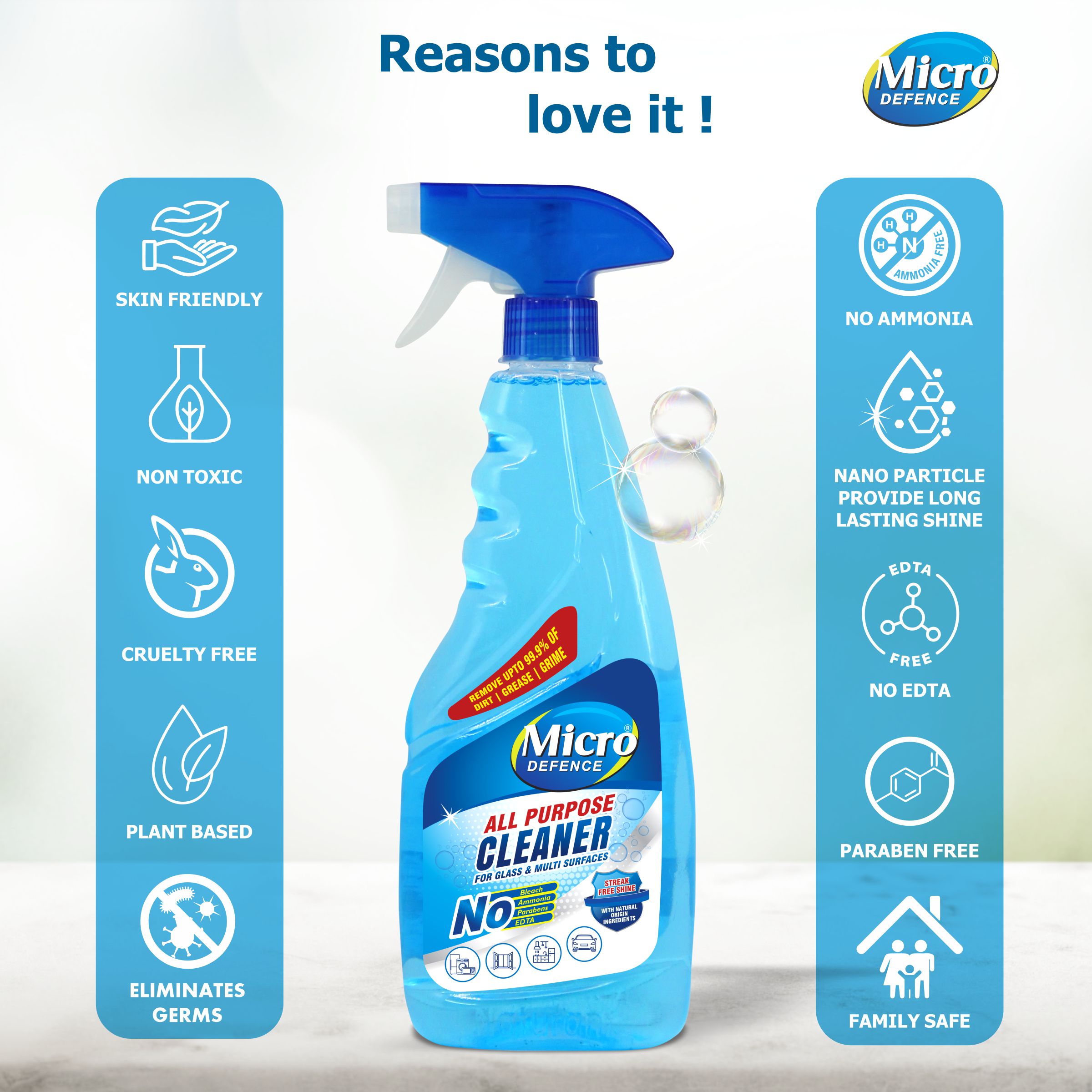 Micro Defence All-purpose ultra cleaner, is the only solution that you will need to meet your daily household cleaning & maintenance needs. Highlights of the product: