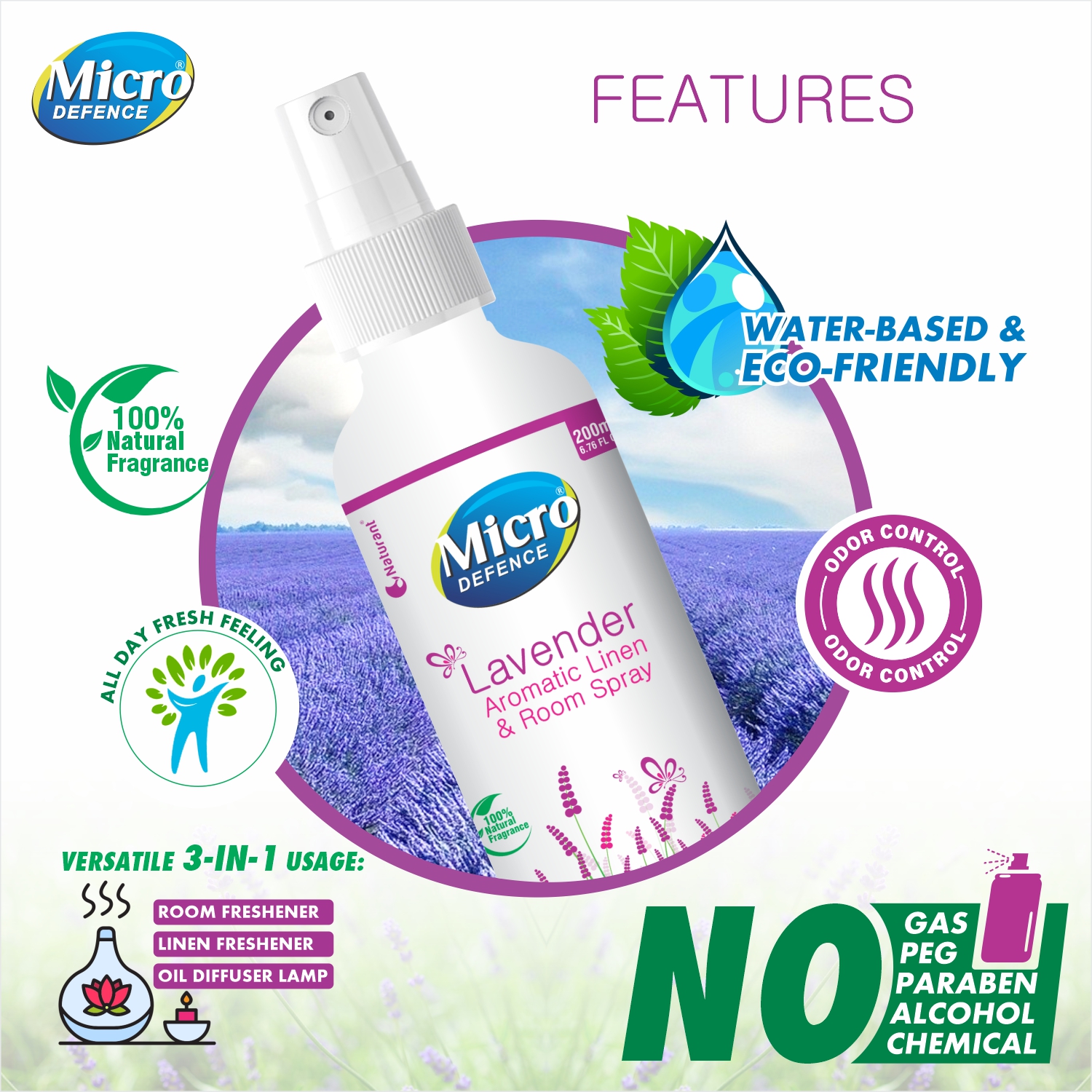 8. Join the Freshness Revolution: Have you experienced the refreshing magic of Micro Defence Room & Linen Spray Mix Fresh variant? If not, now is the time to elevate your surroundings. Immerse yourself in the world of pure, natural freshness, and experience the ultimate relaxation with our Aromatic Linen and Room Spray. Elevate your senses, protect the environment, and indulge in the serenity it brings.