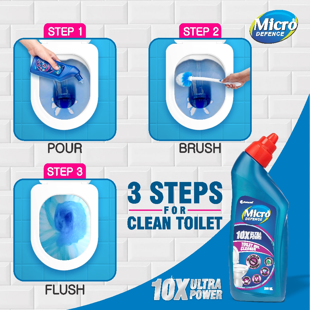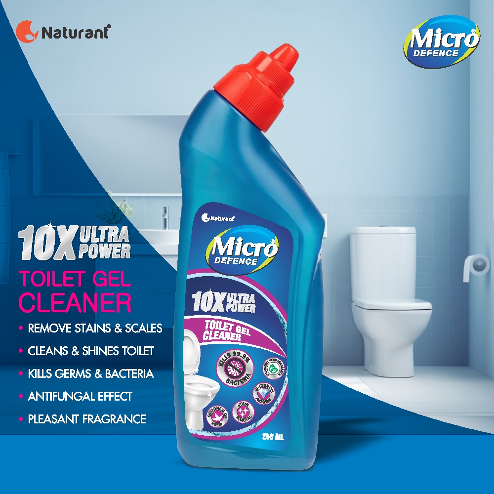 Introducing MicroDefence Toilet Cleaner Gel with 10X Ultra Power for unparalleled toilet hygiene. Boasting a 99.9% germ-killing potency and advanced descaling technology, this cleaner eradicates lime scales, urine marks, and heavy soil, ensuring a spotless toilet bowl. The 10X concentrated formula offers maximum cleaning with minimal product, while corrosion inhibitors safeguard Western and Indian toilet seats. Its extra-thick, septic tank-safe gel clings to bowl walls, allowing for thorough scrubbing. Enjoy a pleasant fragrance without harsh fumes, and experience superior stain removal for consistently clean results. Elevate your bathroom experience with MicroDefenceāthe ultimate solution for a hygienic and fresh toilet bowl.